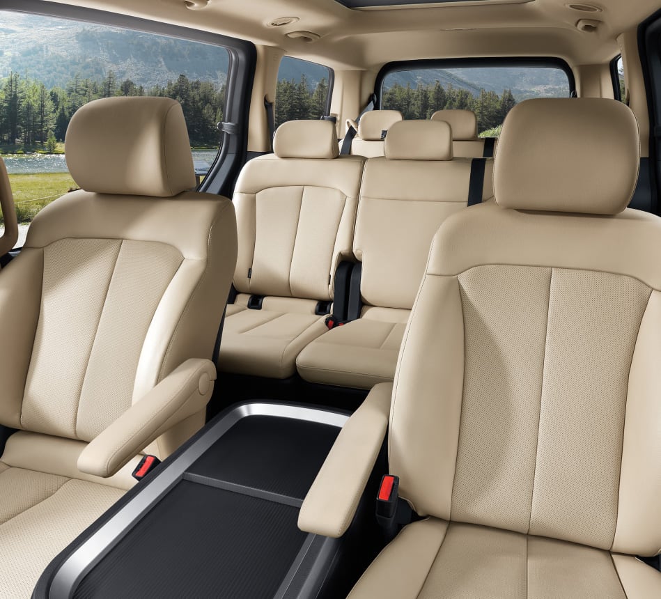 Минивэн «Стария» от корейского автопроизводителя — безопасный и эргономичный восьмиместный фургон. Производитель позаботился о перегородке между грузовым отсеком и салоном, удобной распашной двери, внушительном пространстве для задних пассажиров. Эстетика авто базируется на светодиодных фарах, задних фонарях мозаичного типа, 17- и 18-дюймовых литых дисках. Солидный черный цвет интерьера салона, сдвижная конструкция окна, панорамный вид делают модель еще более выразительной и продуманной. К другим особенностям относятся: